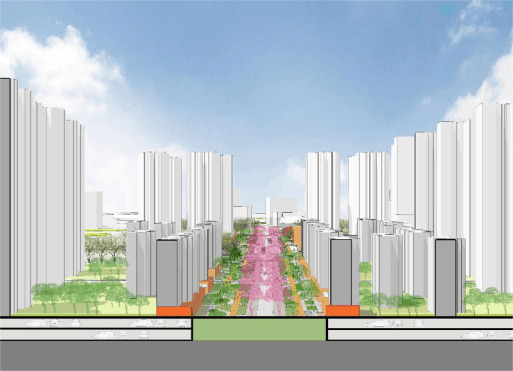 针对人居环境,项目以“两大长廊+三座公园”营造全域公园城市;