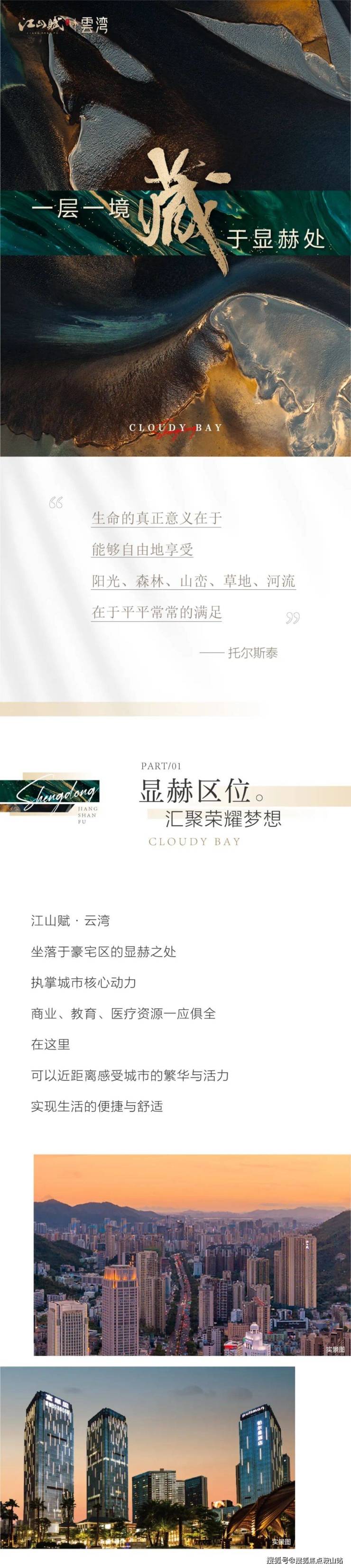 顶级配套资源。小区所在的吉大CBD板块,可以说是珠海最初的豪宅购买力最强区域,是“高端代言”板块。包括银行总部、金融中心、繁华商圈等城市顶尖资源配套,通通汇聚在江山赋 | 云湾的“10分钟生活圈”内。