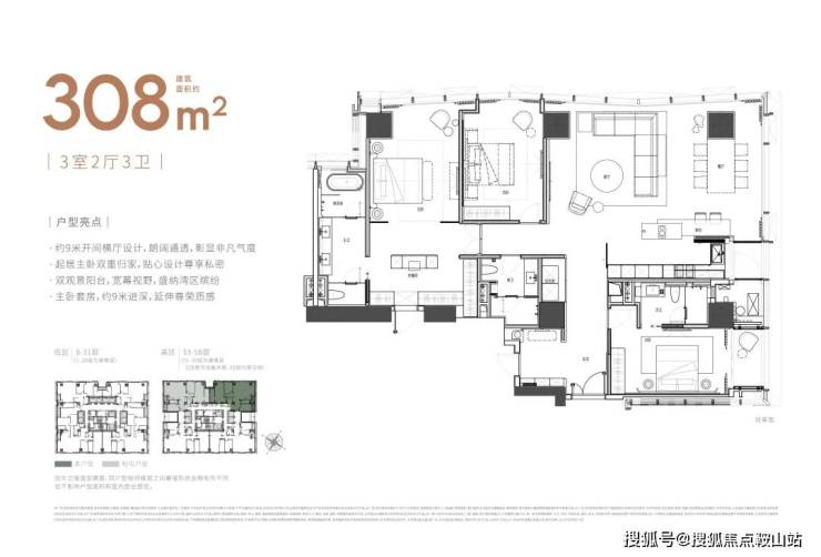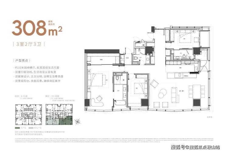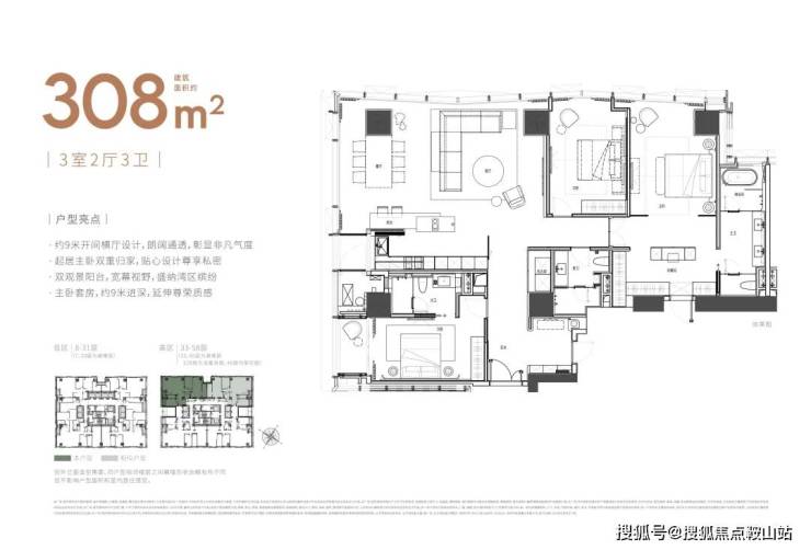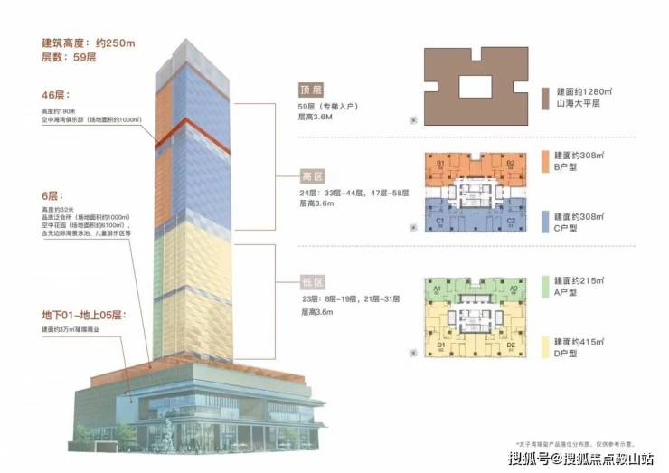 楼层高:59层(低区8-31层,高区33-58层避难层20/32层)