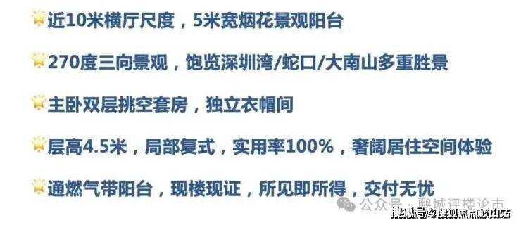 核心卖点突出,京基品牌深耕深圳,品质与售后有保障;4.5米层高LOFT高使用率,户户通燃气带阳台;现楼交付即买即住,无等待周期;开发商直营价格透明,无购房套路,自住投资两相宜。