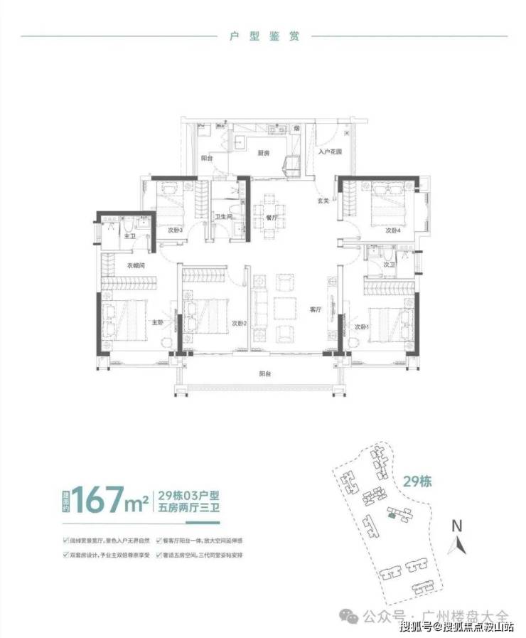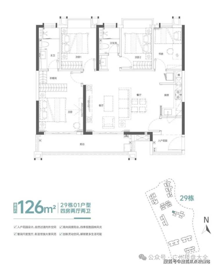 29栋全南向户型,全屏无遮视野,远眺万博城市景观,俯瞰一线中央园湖双景。面积段分别为01单位126m²四房两厅两卫、02单位128m²四房两厅两卫、03单元167m²五房两厅三卫,总共30层,其中1至3层为商铺,4到30层为标准层,其中03单元29至30层为复式。