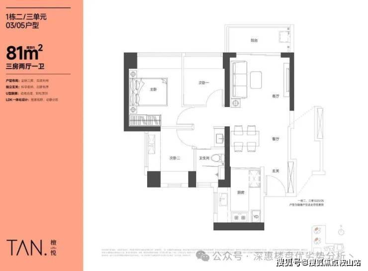 在售户型一:81㎡的3房2厅1卫