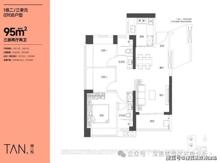 在售户型三:95㎡的3房2厅2卫