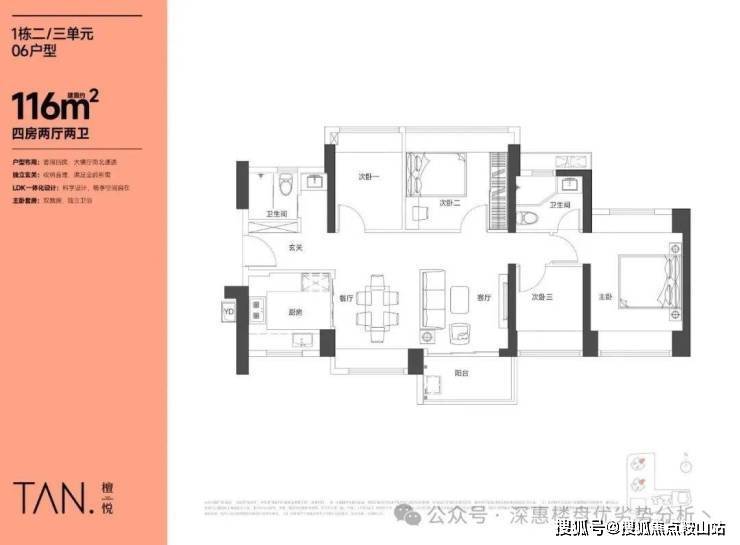 在售户型四:116㎡的4房2厅2卫
