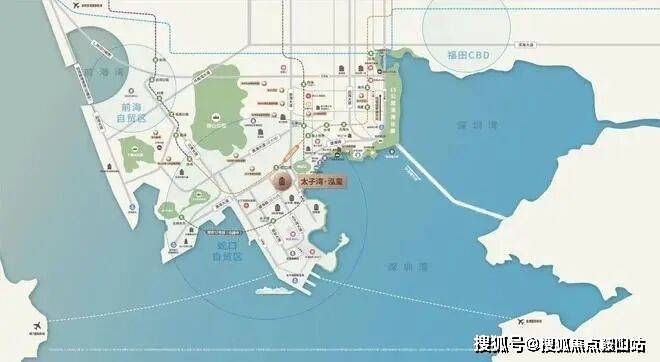 整个太子湾被2&5&12号线三轨覆盖,2号线是众所周知的豪宅线,还接驳5号线;12号线则是从西部大空港会展湾延伸到宝安南山,贯穿整个蛇口,通过这3条地铁线可以3站前海、7站后海、12号线直达机场。