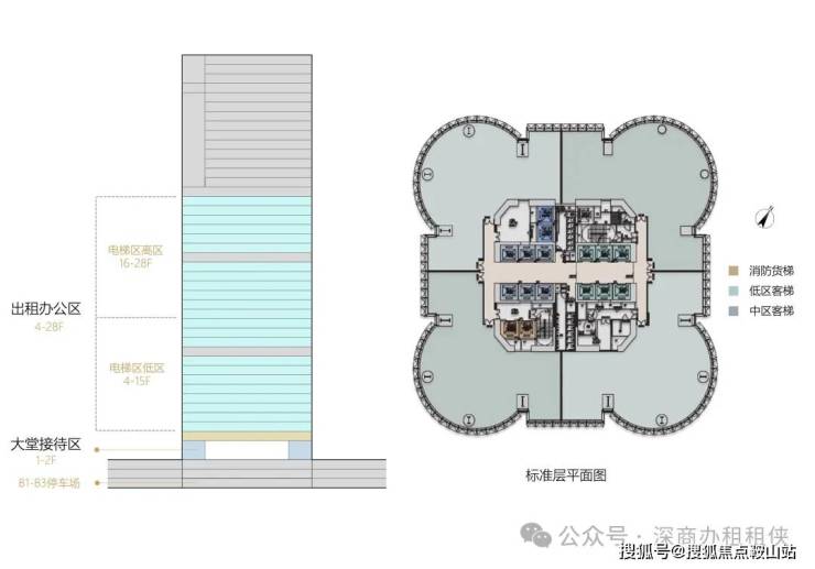 标准层面积:2400至2600平方米(每层分隔为4户)