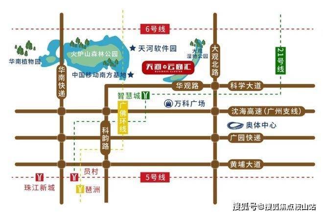 天河・云商汇雄踞天河智慧城芯,南侧紧临占地 7.5 万㎡的万科广场 。距离 21 号线智慧城站约 800 米,6 站直达珠江新城,且片区规划 1 条城轨,交通极为便利 。十四五期间,天河智慧城核心区聚焦数字经济与人工智能,项目所处的核心商务区与珠江新城中央商务区形成独特的 “双核驱动” 格局,发展前景广阔 。其规划 8 栋创意办公空间、19 栋企业总部及少量商铺,以低容积率打造全能型生活场域 。