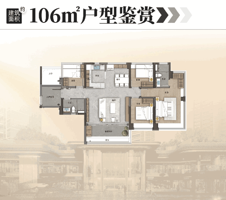 建面约106㎡户型,三代同堂越住越新鲜