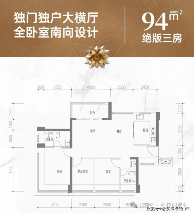 约84㎡南向山湖海景,最低门槛上车3房2卫,总价约358万起