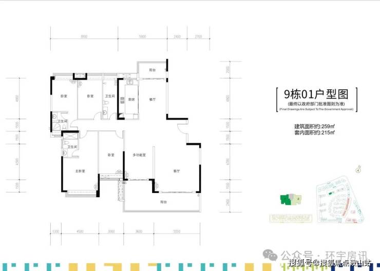 9栋建筑面积:255-259㎡,2-24层、两梯两户