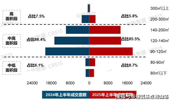 图:2025年1-6月30个代表城市各面积段住宅销售套数占比数据来源:中指数据CREIS(点击查看)市场监测:https://u.fang.com/ytcrnn/