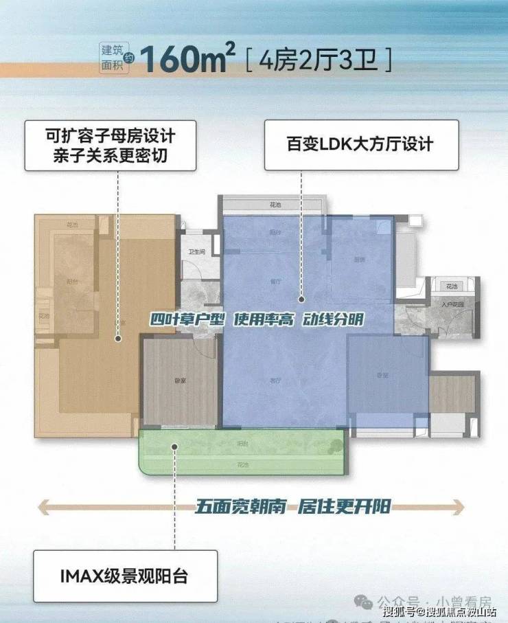 项目共规划4栋住宅楼,均为37层,分高低区设计,而且梯户比跟户型都各不相同: