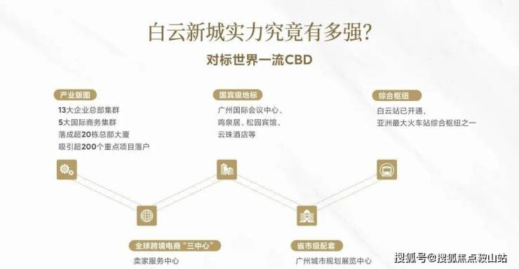 广州新一代CBD白云新城CBD,定位为国际交往中心、总部经济集聚区和云山西麓宜居新城,突破了传统CBD单一产业功能的局限,成为粤港澳大湾区唯一集空港经济、跨境贸易、科技创新、总部集聚于一体的综合性经济中枢。