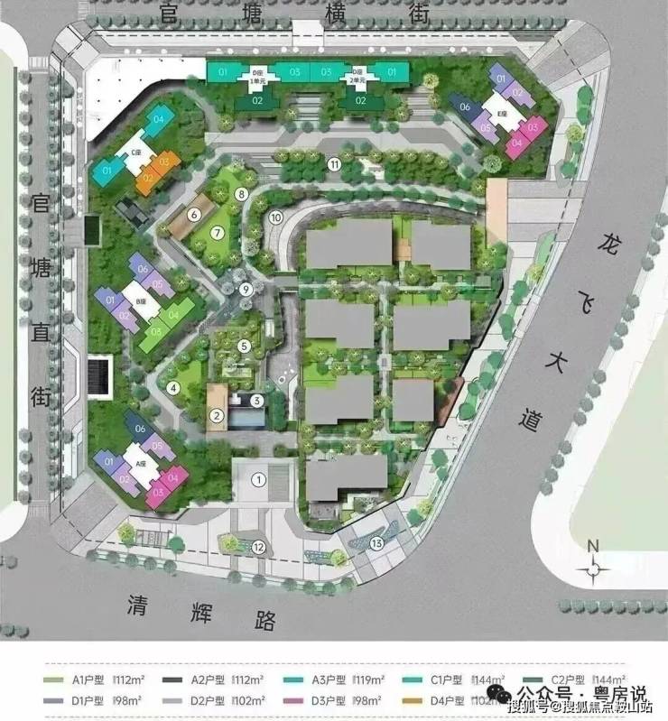 【梯户比】1栋A/B/E座3梯6户,1栋C座2梯4户,1栋D座2梯3户