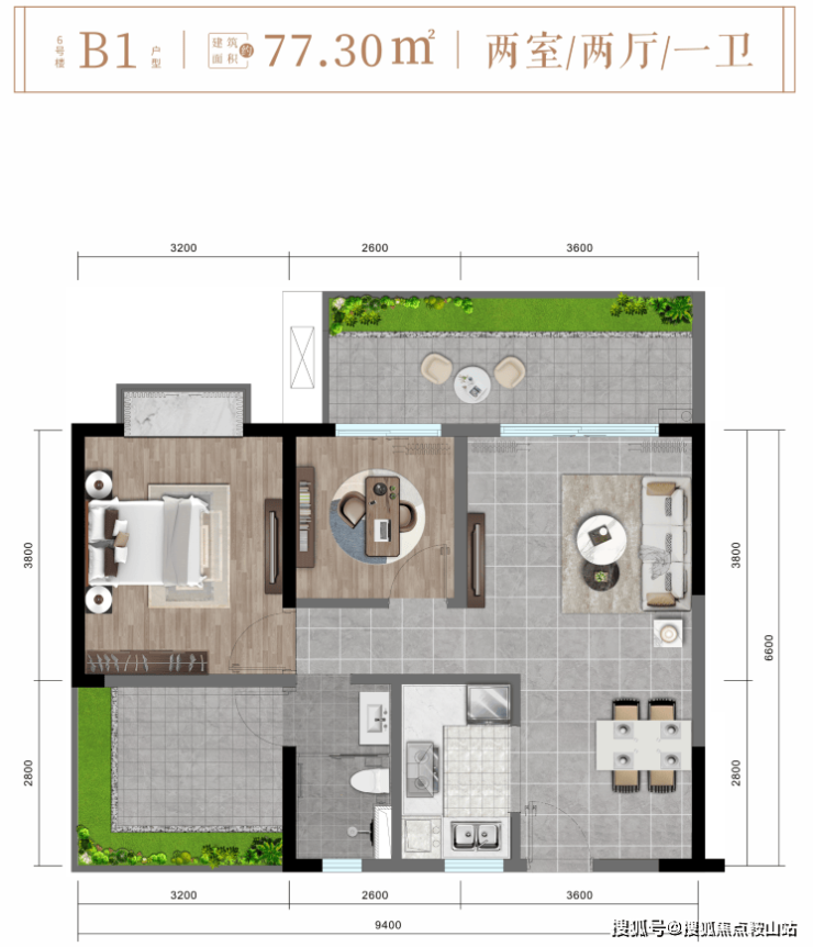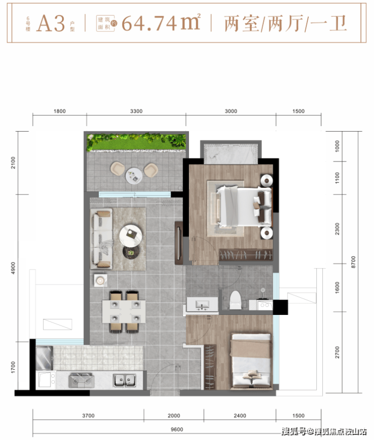 ✨ 6#楼A3户型约64㎡精致两房两厅一卫