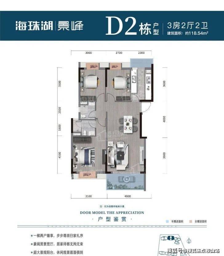 无遮挡视野,居家生活处处有景,三开间朝南,全明空间,大面宽采光,百变空间,两房变三房,全优成长户型,U型厨房,科学动线,烹饪美好时光。